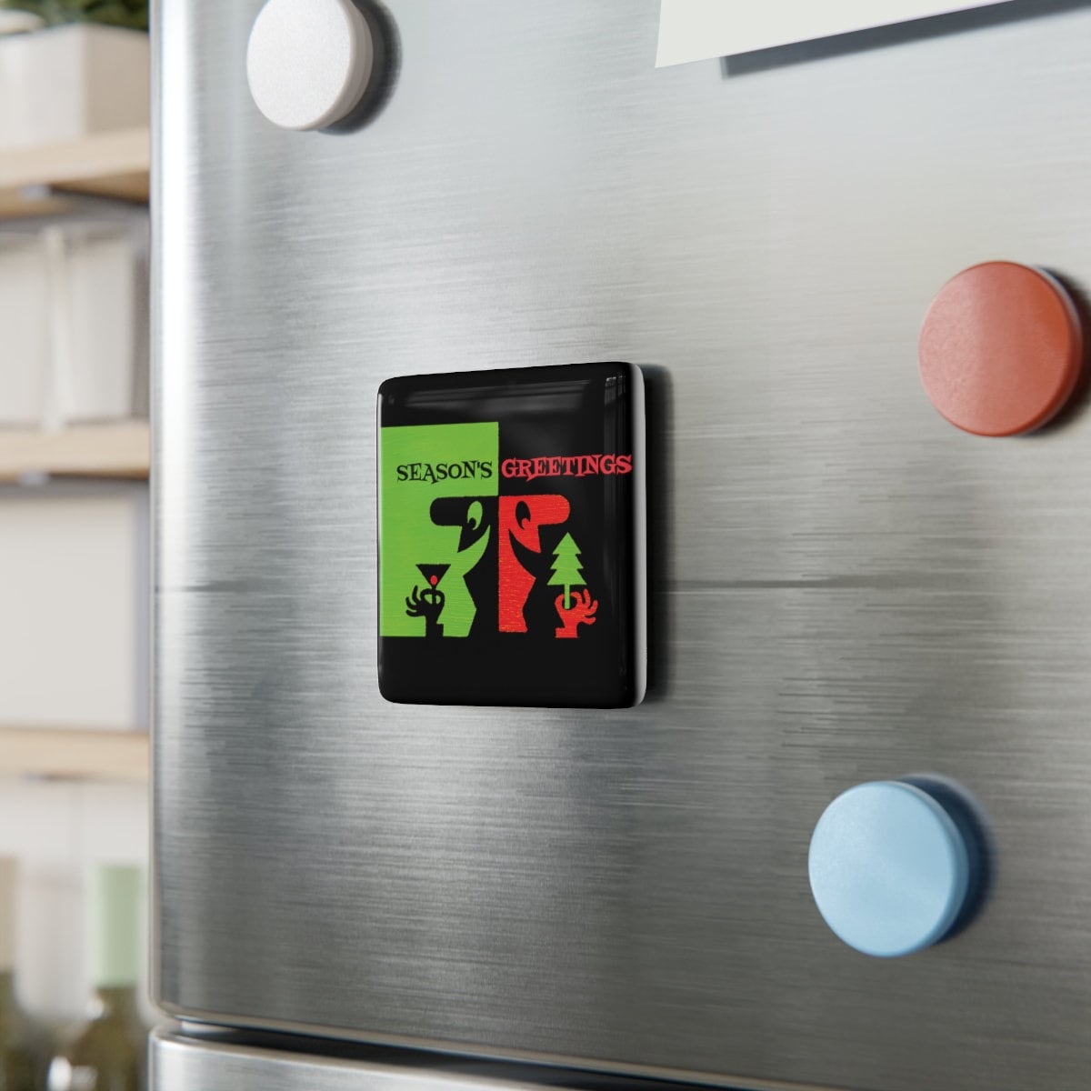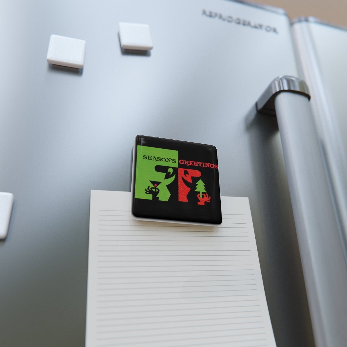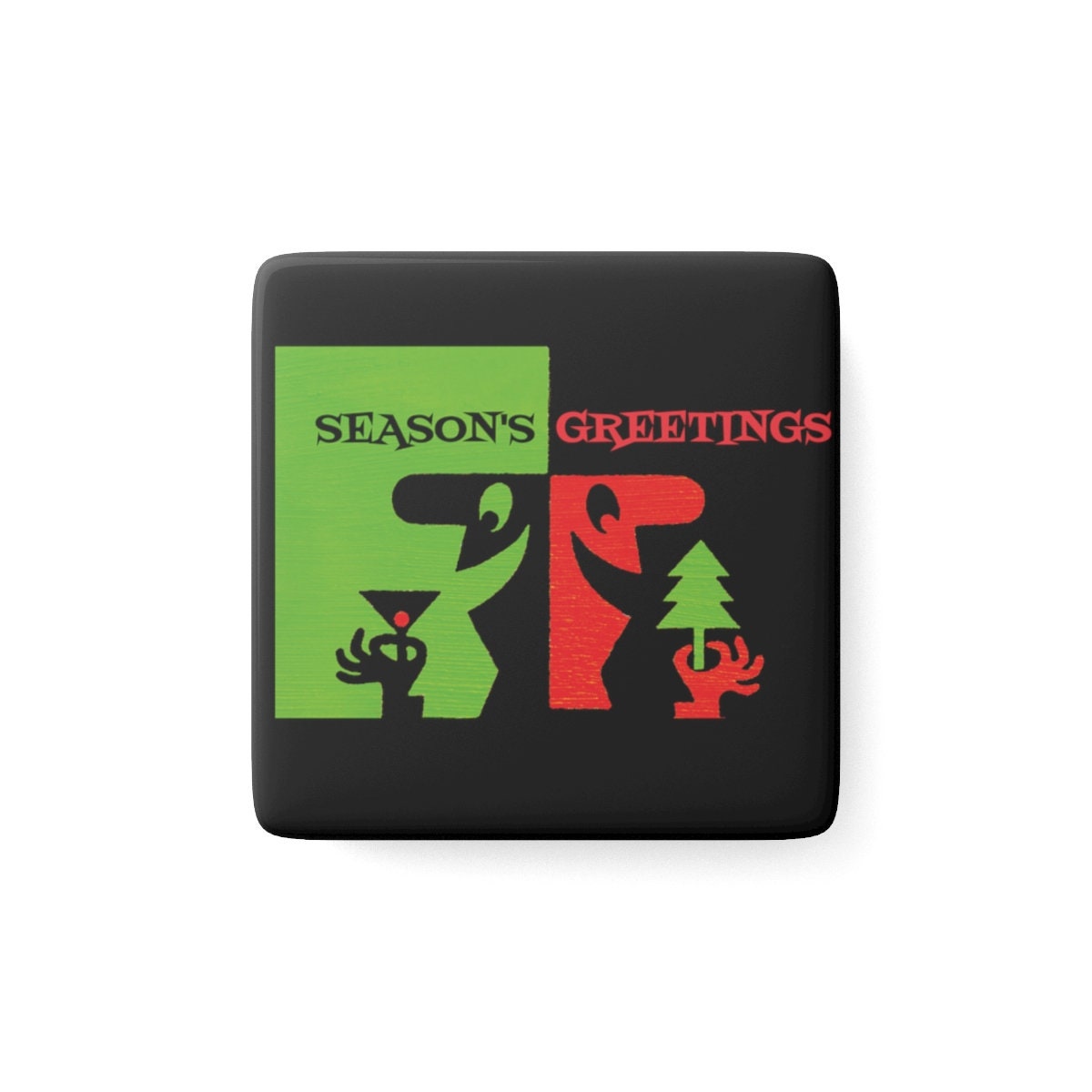 Retro Mid Century Modern Season's Greetings Porcelain Magnet, Square / Mid Century Modern 1950's Christmas Splendor for the Fridge!