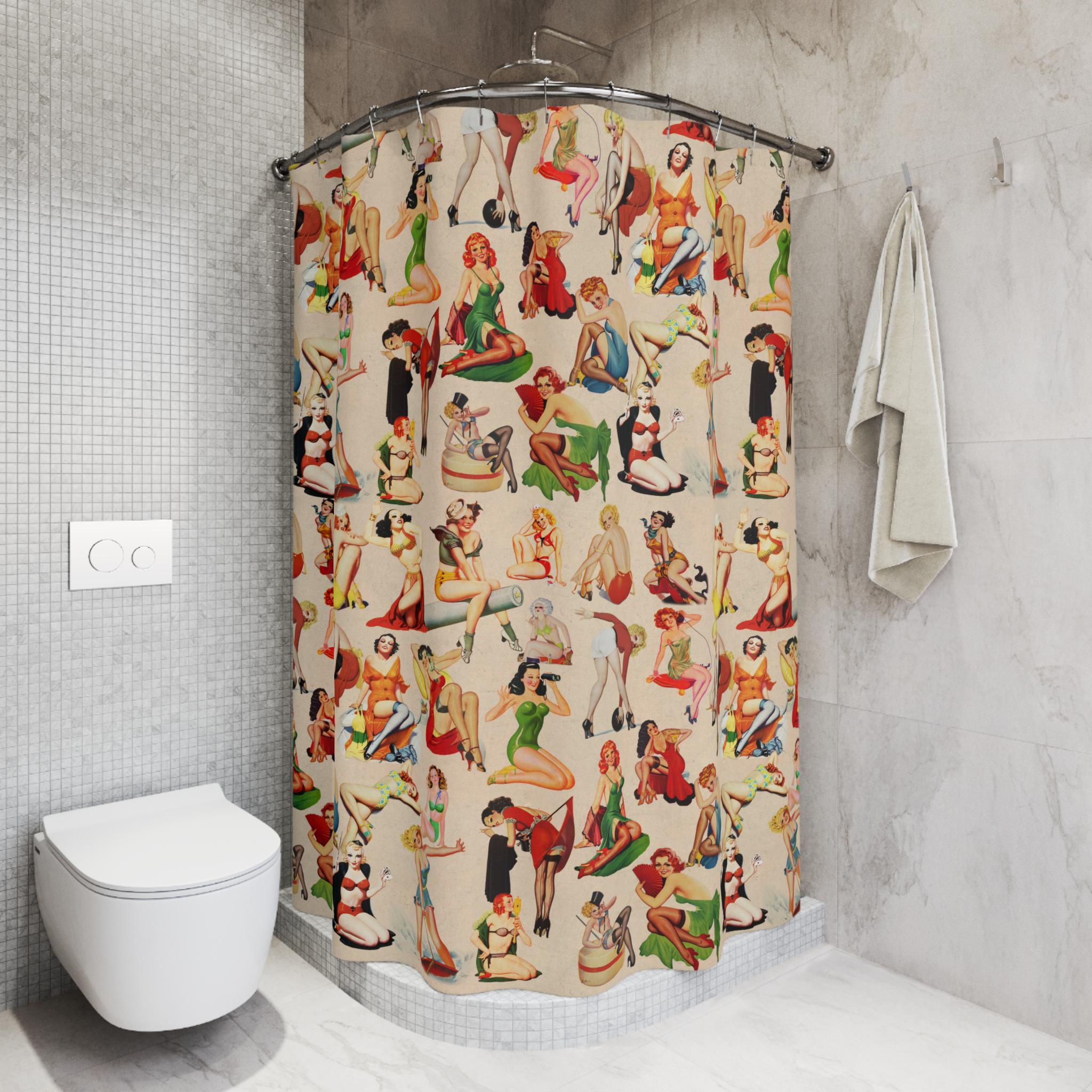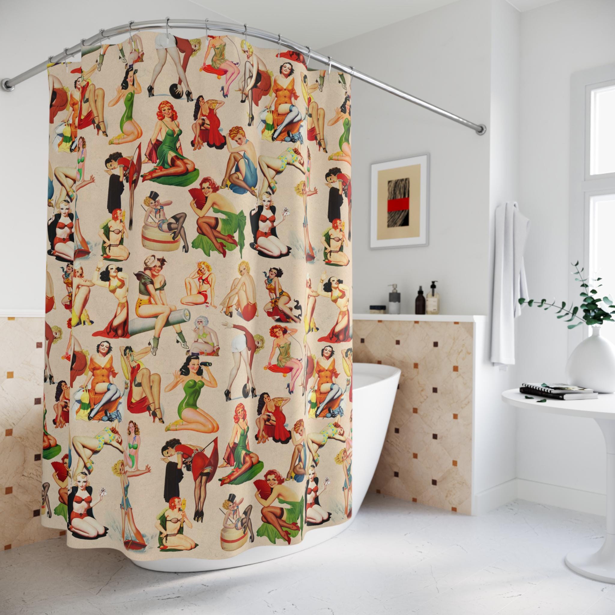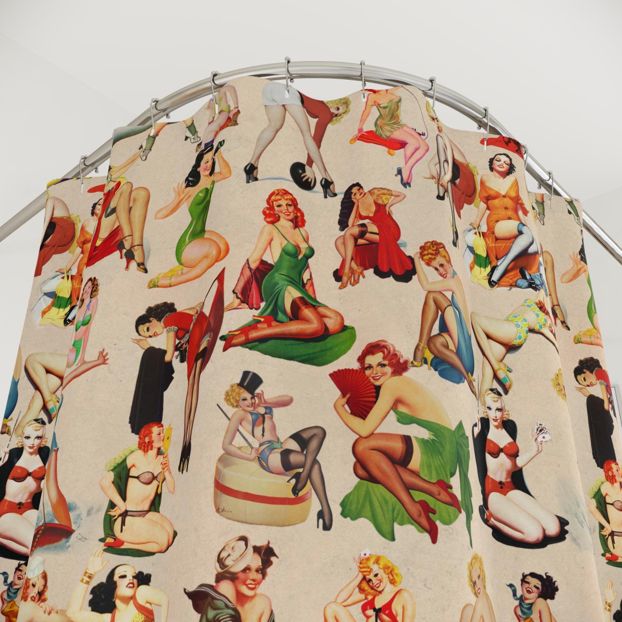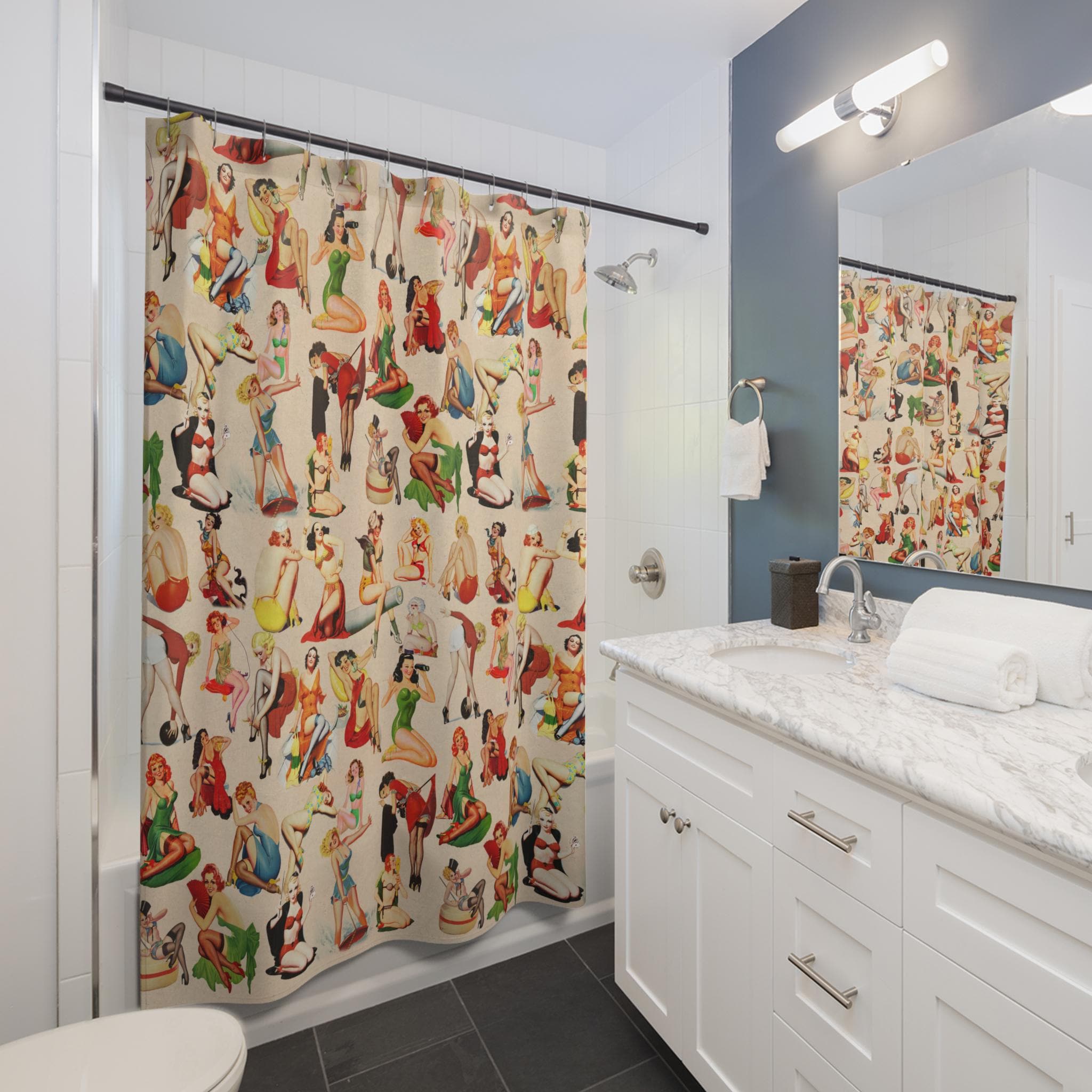 Transform your bathroom with a Retro 30's and 40's Pin Up Beauties Shower Curtain. This classic cheesecake art design brings a vintage vibe to your space, perfect for those who appreciate nostalgia and retro aesthetics. Ideal for adults looking to add personality and style to their bathroom decor, especially during themed parties, vintage events, or pin-up inspired occasions.