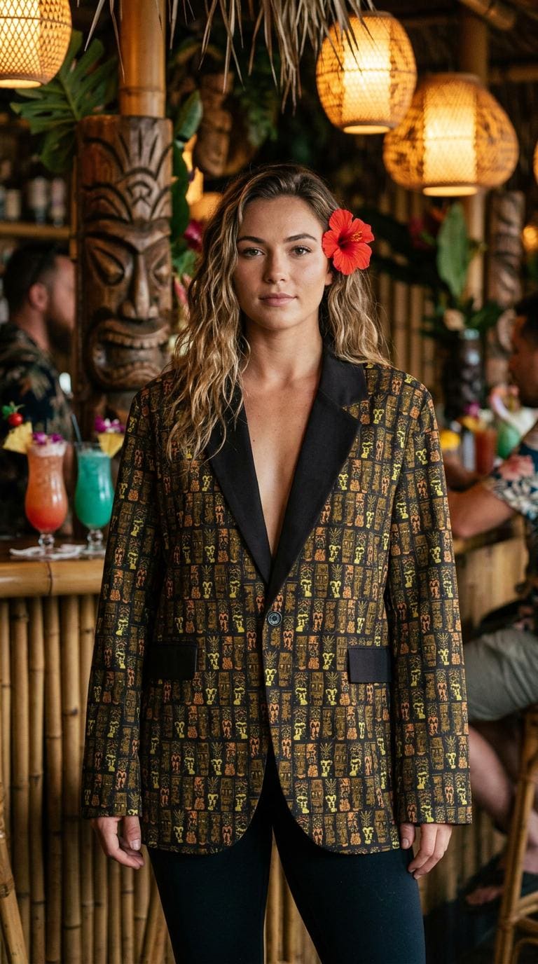 The classic version of the jacket is made classier with MSM Tropical Tiki splendor and is made of wrinkle defiant polyester canvas fabric, which is soft, lightweight and stylish overall. Button closure and side pockets allow for proper storage.