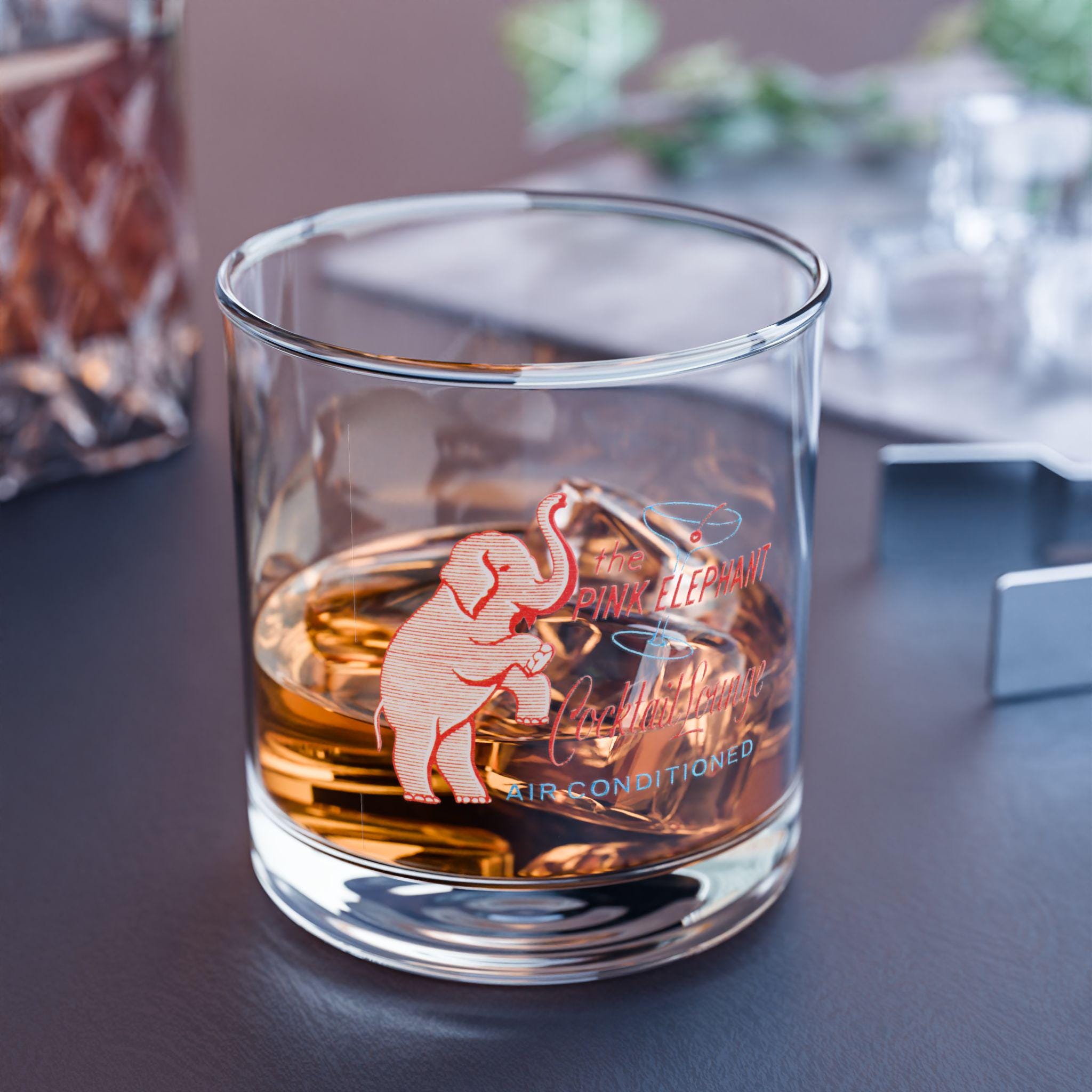 Reach for evenings that feel a little whimsical and a touch retro. This 10oz rocks glass carries a wraparound print of a playful pink elephant and delicate script, like a midnight invitation to slow sips and good conversation. The clear tempered glass keeps the artwork luminous while the substantial base gives the glass a satisfying weight in hand. Use it to nurse a classic whiskey, stir up a bright cocktail, or hold a chilled mocktail while you unwind with friends. It’s made in the USA, printed with vibrant, long-lasting colors, and best enjoyed when hand washed to keep the image crisp.