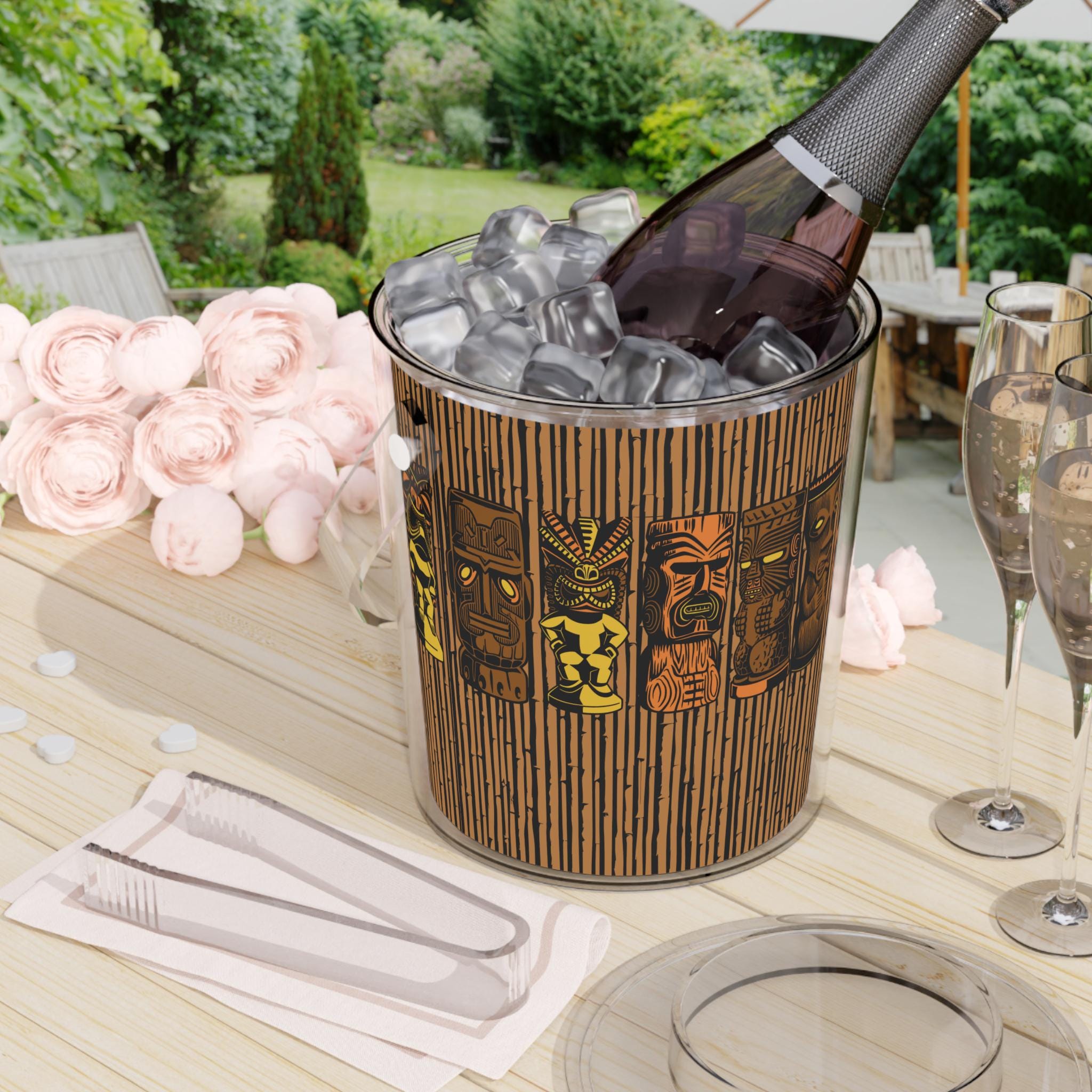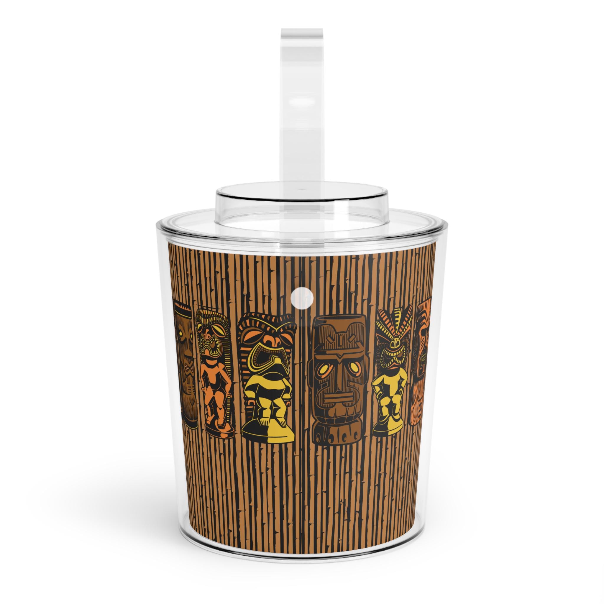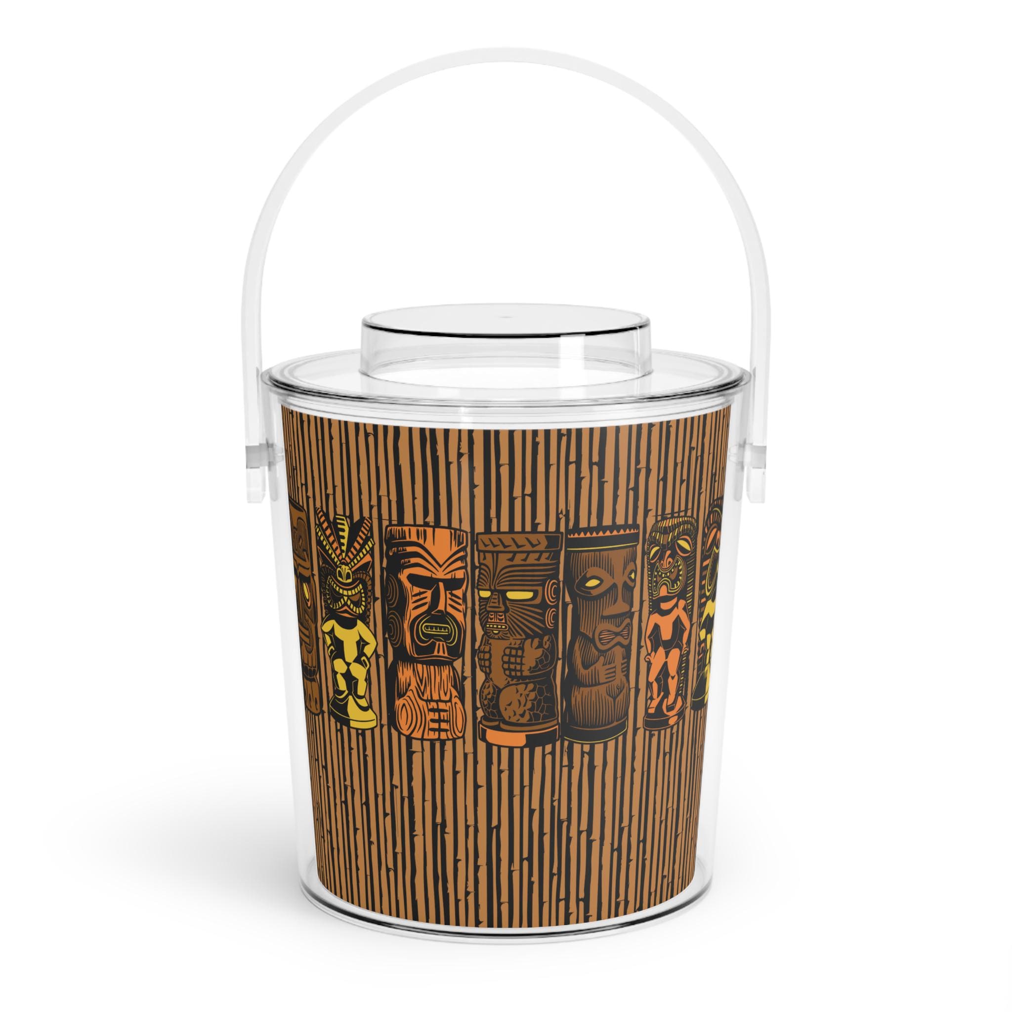 Bring some retro MCM vibes to your next party with this Tiki God Bamboo Ice Bucket with Tongs. Keep your ice frozen for up to 3 hours in this durable and vibrant acrylic Lucite bucket. This 3 qt capacity ice bucket is perfect for entertaining and adding a fun touch to your gatherings. Hand wash only.