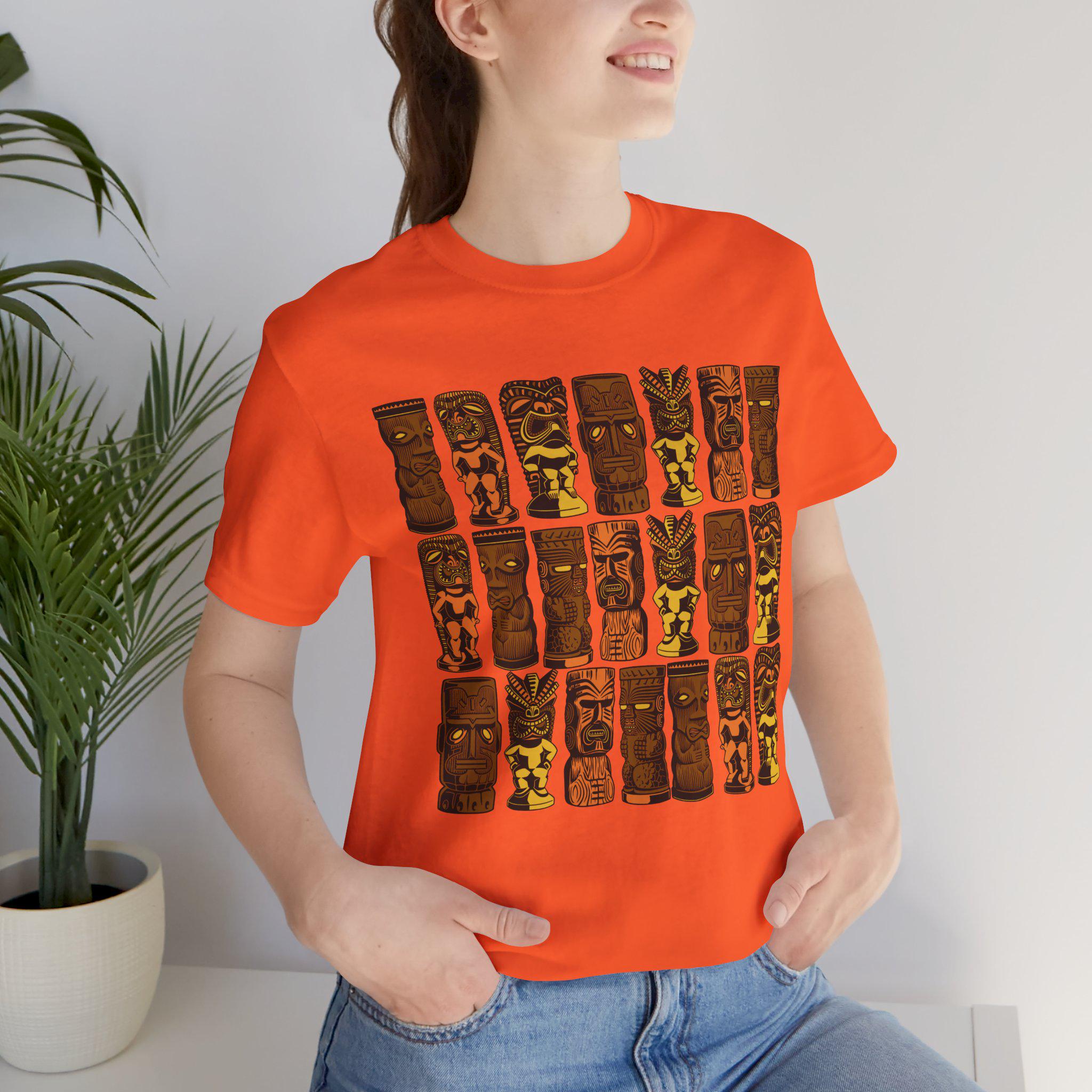 Feel the sun-soaked hum of mid-century modern beaches with this retro tiki gods tee. Bold, slightly tongue-in-cheek tiki faces and tropical motifs spread across the chest, like a vintage postcard come to life. It sits light and airy against your skin, the kind of shirt you reach for when you want to channel easygoing island energy—late-afternoon light, a warm breeze, and a playlist that favors ukuleles and surfboard wax. Wear it to backyard barbecues, flea-market hunts, or low-key summer nights when conversation drifts toward old travel stories. The fit keeps things tidy and wearable so the design can speak loud without shouting. For people who collect the quirky, the graphic, and the nostalgic, this tee slips into the rotation like a familiar beat.