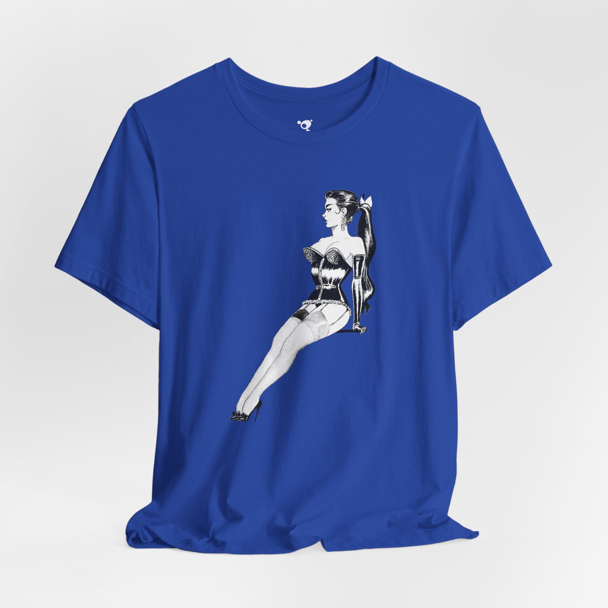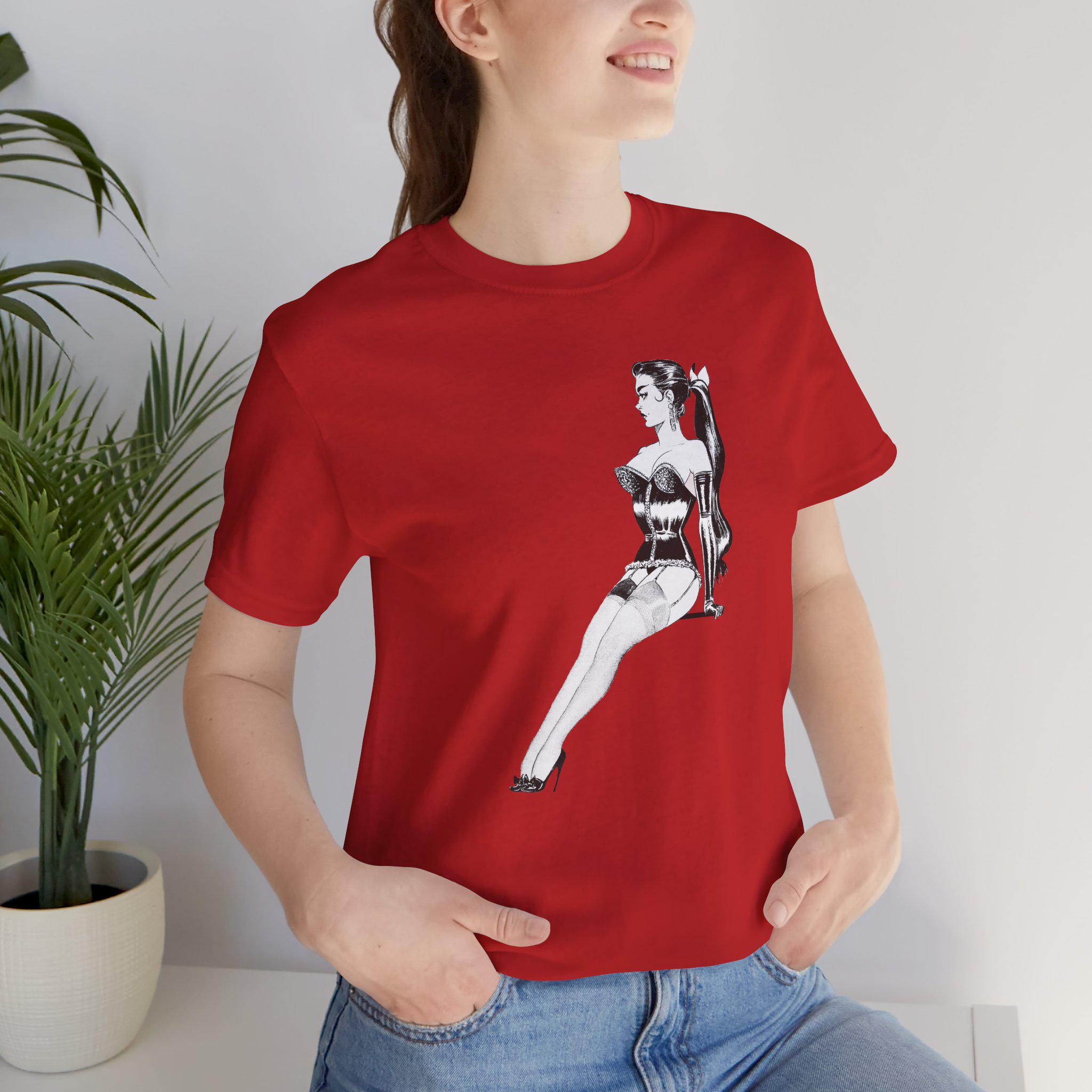 This lightweight tee wears like a wink from mid-century burlesque and creative knot tying—bold, playful, and a little edgy. The retro BDSM bondage illustration sits cleanly on the chest, evoking smoky club lights, satin ropes, and confident afternoons spent curating a rebellious wardrobe. It drapes casually over the body, easy to layer under a leather jacket or show off on its own. For adults who collect vintage-inspired subculture pieces or who attend themed nights and alternative gatherings, this shirt speaks in the language of nods and knowing smiles—and carries itself with quiet durability that withstands repeat wear and late-night adventures.