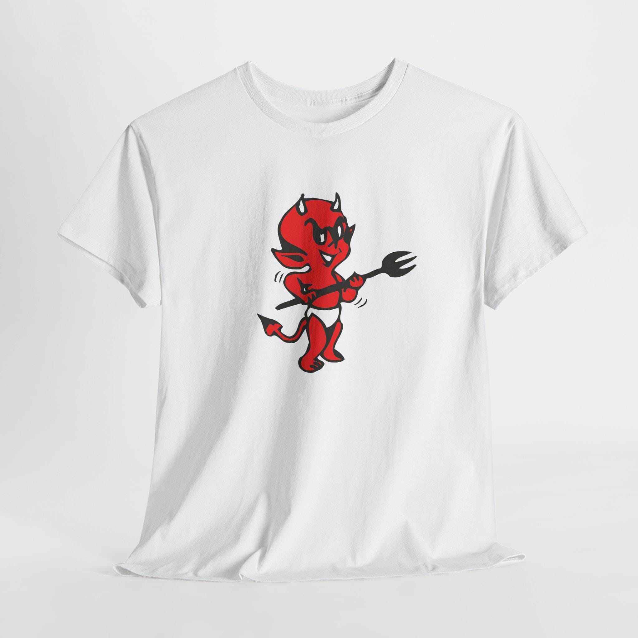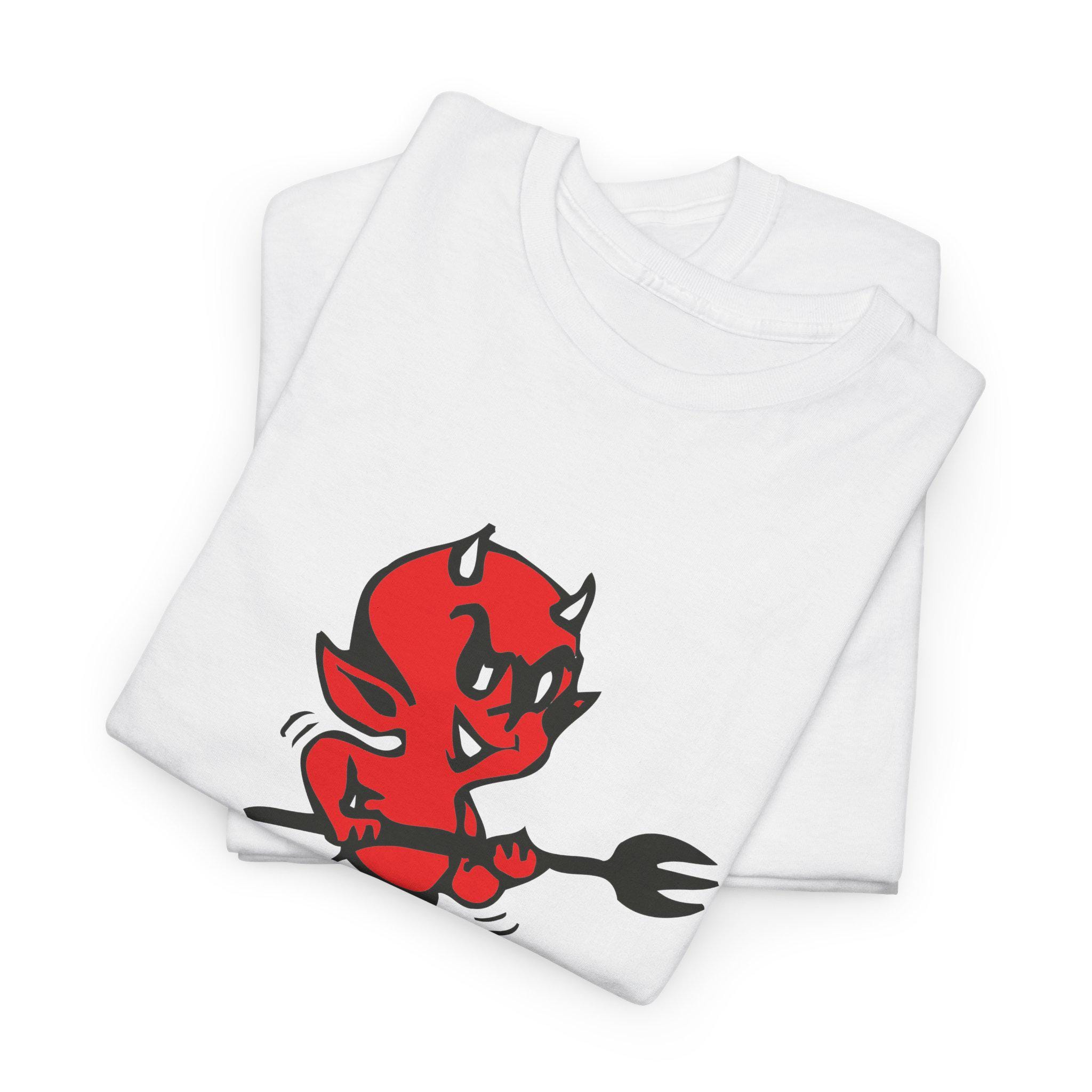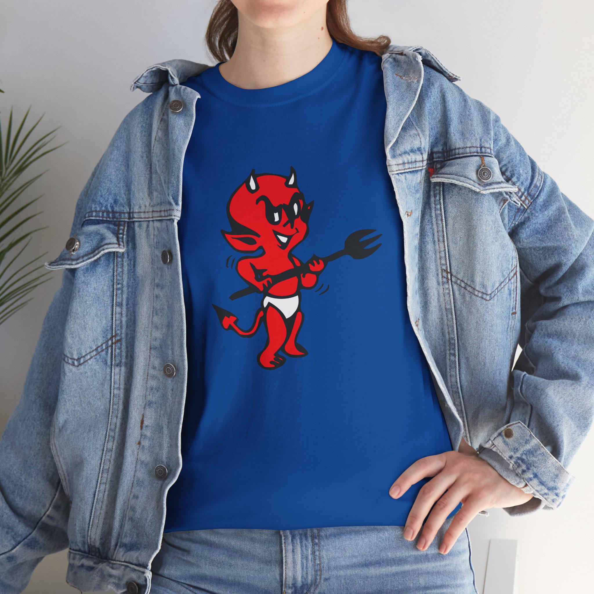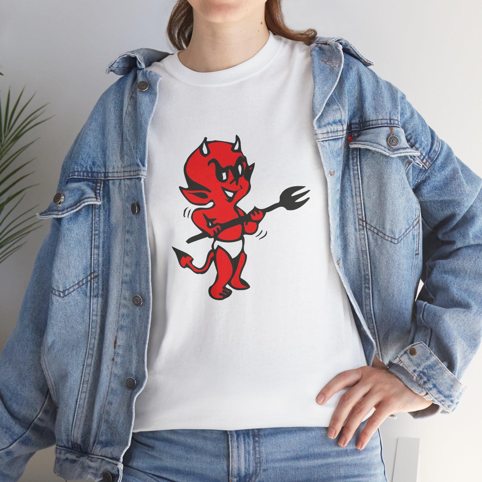 Channel a bit of mischievous vintage flash with this Lil Devil tattoo–inspired tee. The design sits bold and slightly weathered across the chest, like ink straight from the shop — clean lines, dark fills, and a wink of attitude. It feels lived-in the moment you put it on: sturdy cotton that breathes, holds its shape, and carries the print without fading into mush. Wear it under a leather jacket for late-night street runs, pair it with high-waisted denim at a punk show, or let it be the quiet icon at a backyard bonfire. This shirt moves with you — from sketchbook sessions and ink appointments to weekend road trips and low-key hangs with friends who get the same love for hand-drawn flash art. The collar keeps its shape, the fit is comfortably classic, and small details (like the tear-away label and clean shoulder taping) let the art take the stage without fuss.