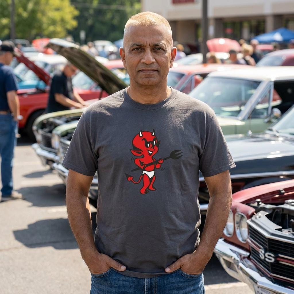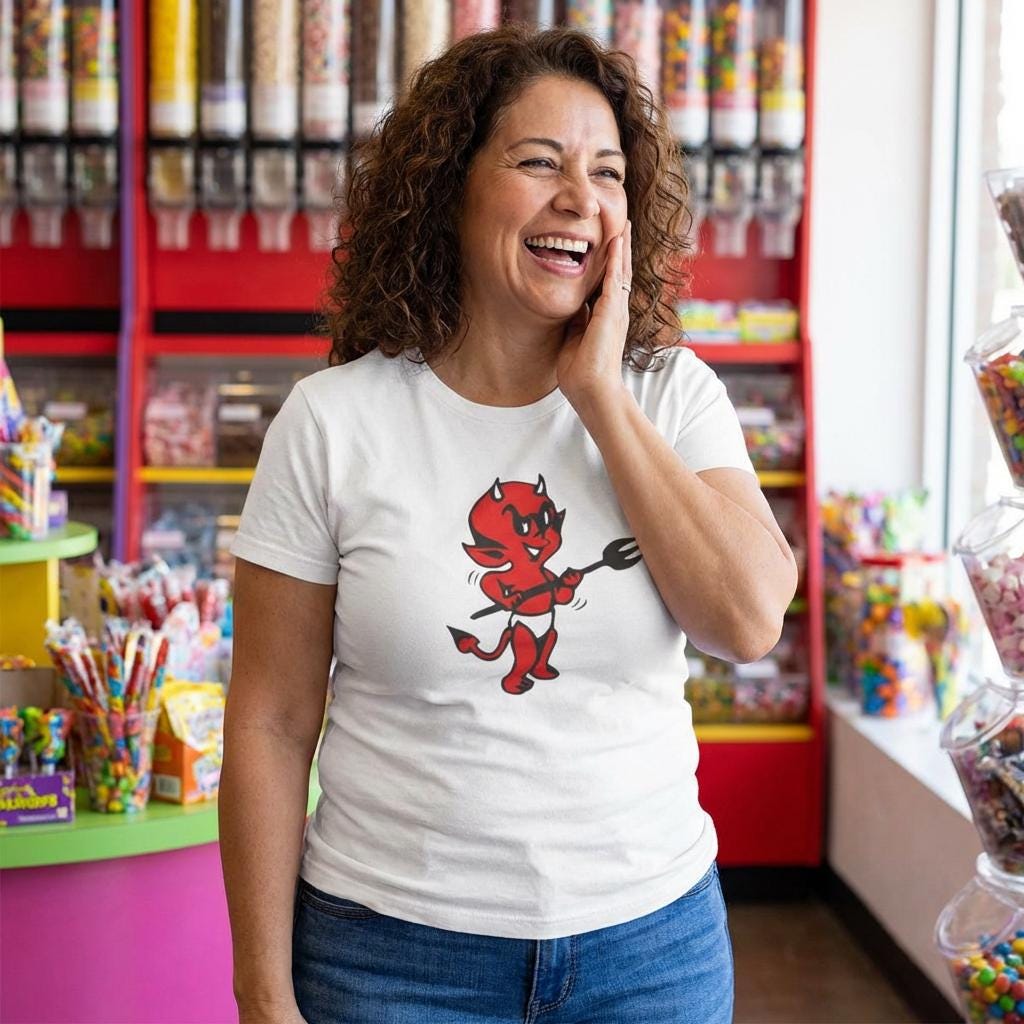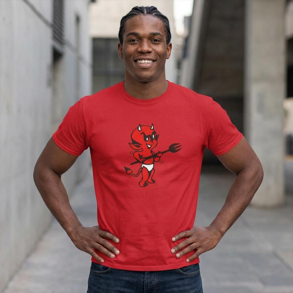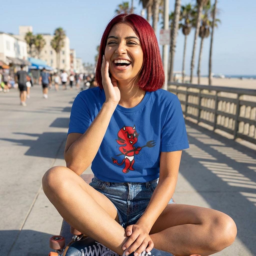 Channel a bit of mischievous vintage flash with this Lil Devil tattoo–inspired tee. The design sits bold and slightly weathered across the chest, like ink straight from the shop — clean lines, dark fills, and a wink of attitude. It feels lived-in the moment you put it on: sturdy cotton that breathes, holds its shape, and carries the print without fading into mush. Wear it under a leather jacket for late-night street runs, pair it with high-waisted denim at a punk show, or let it be the quiet icon at a backyard bonfire. This shirt moves with you — from sketchbook sessions and ink appointments to weekend road trips and low-key hangs with friends who get the same love for hand-drawn flash art. The collar keeps its shape, the fit is comfortably classic, and small details (like the tear-away label and clean shoulder taping) let the art take the stage without fuss.