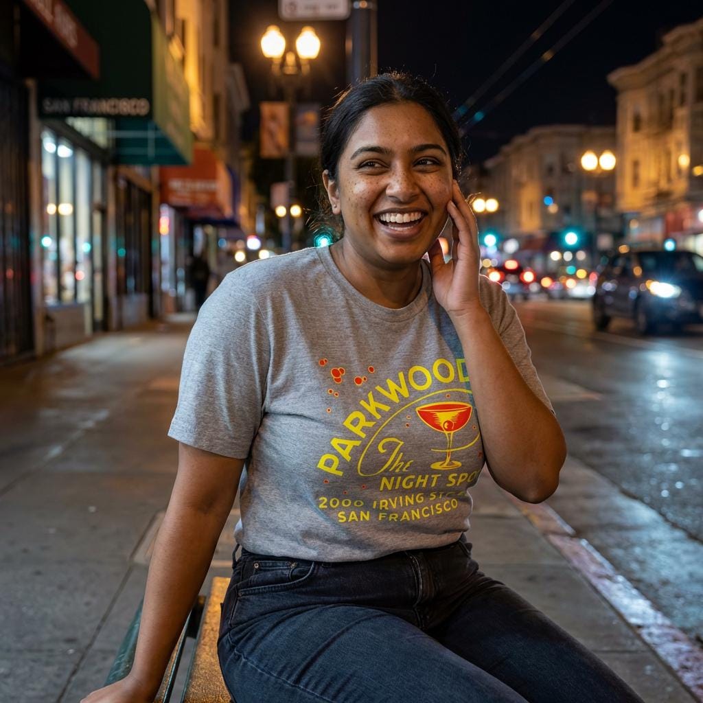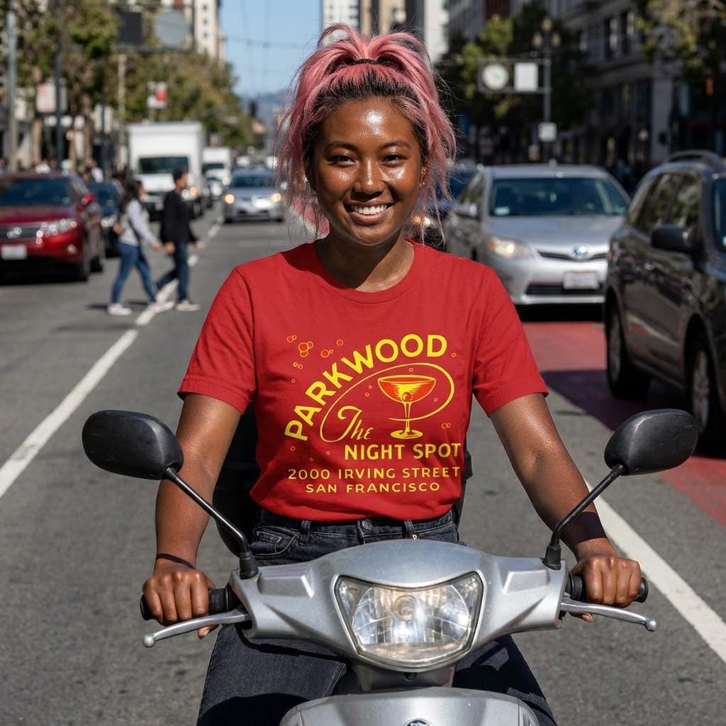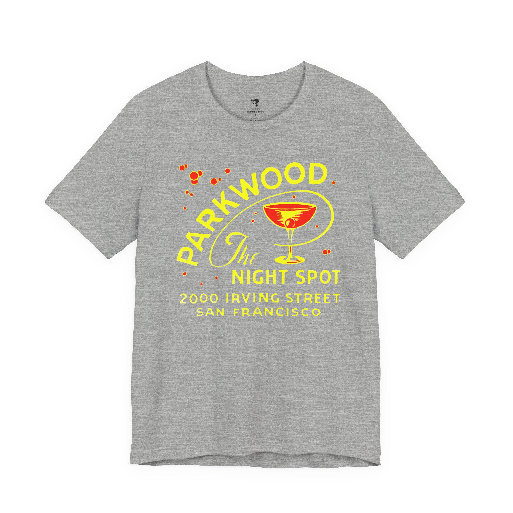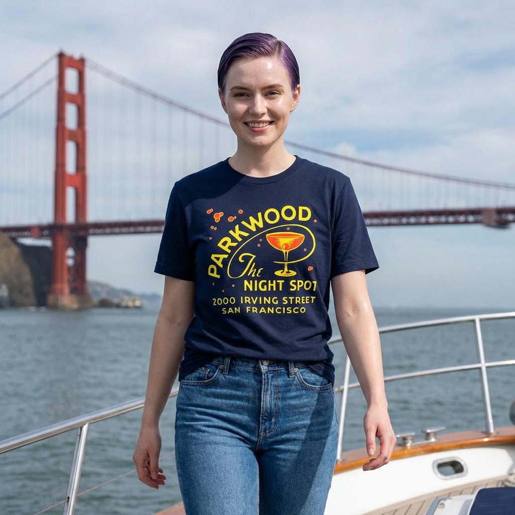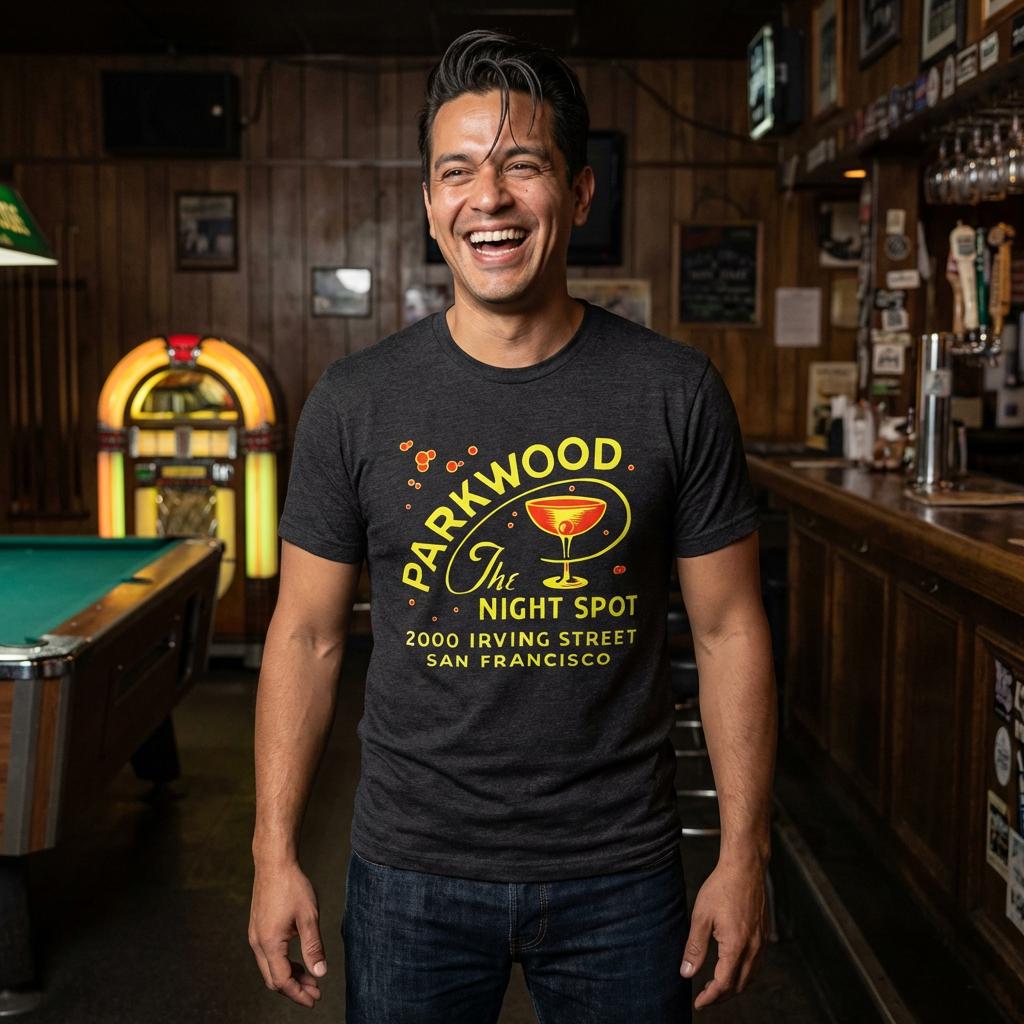 Wear a piece of San Francisco nightlife—soft, slightly worn-in, and quietly confident. This jersey tee carries a retro Parkwood Bar design that feels like neon on a foggy evening: muted colors, a vintage nightclub logo, and a lived-in look that settles into your routine. Lightweight and breathable, it layers easily under a jacket or stands alone for a late-night walk through city streets. The cut sits neatly at the shoulders and chest, giving a tidy silhouette whether you’re heading to a local bar, running errands, or meeting friends for a low-key show. For anyone who collects city memories or leans into nostalgic style, this tee speaks in familiar tones—calm, slightly irreverent, and undeniably urban.