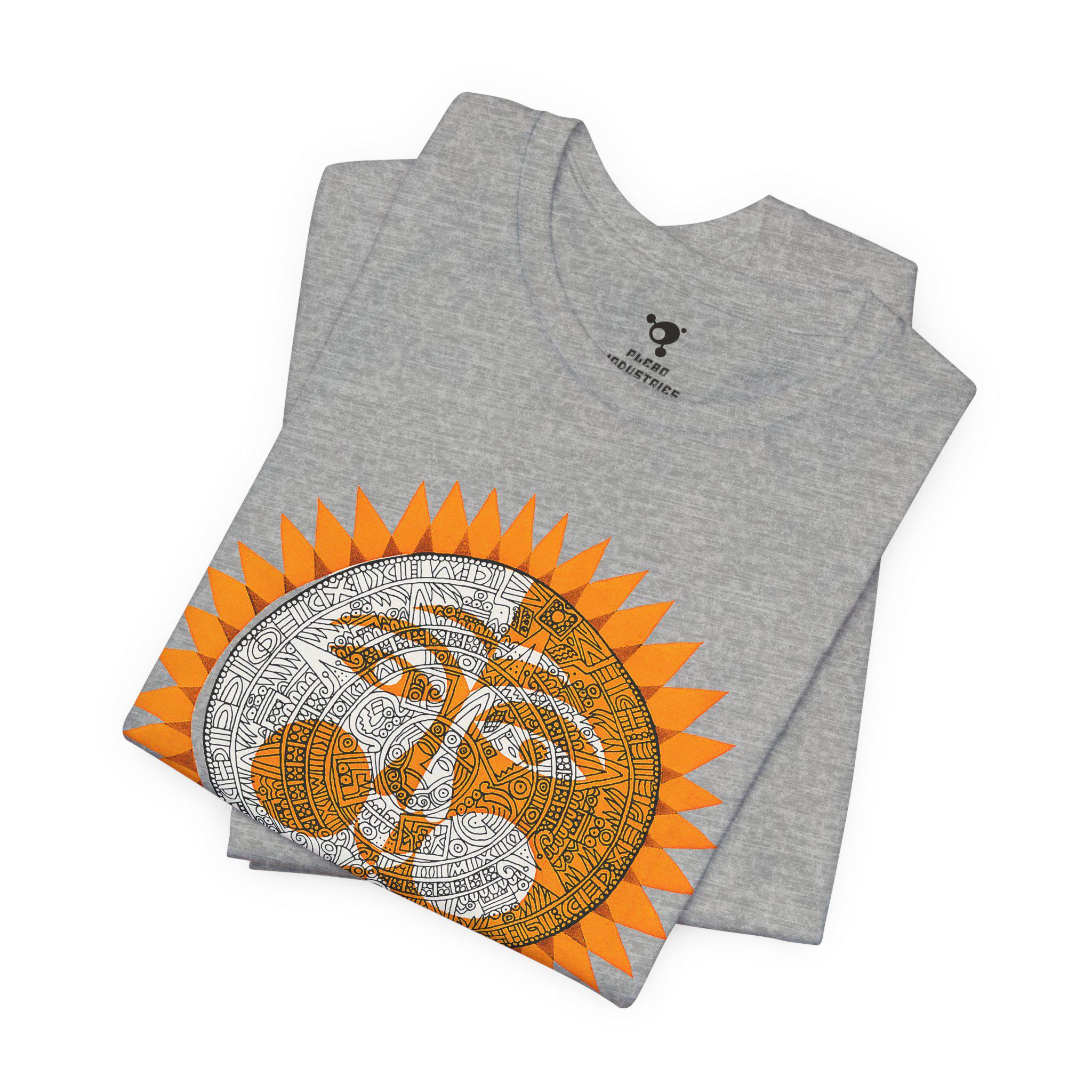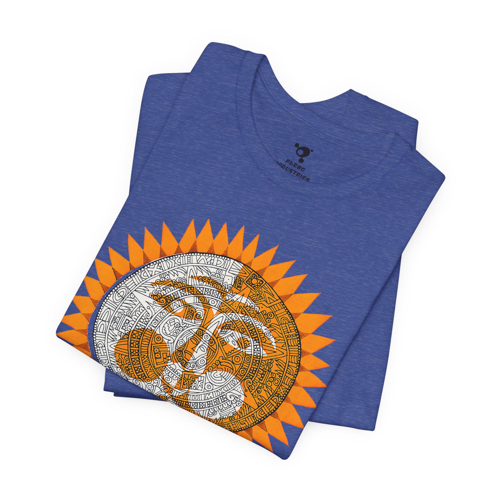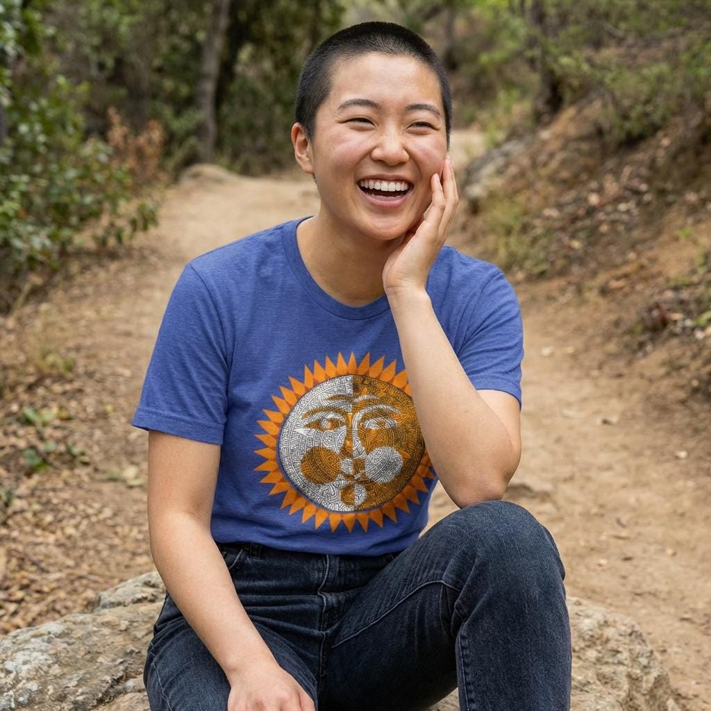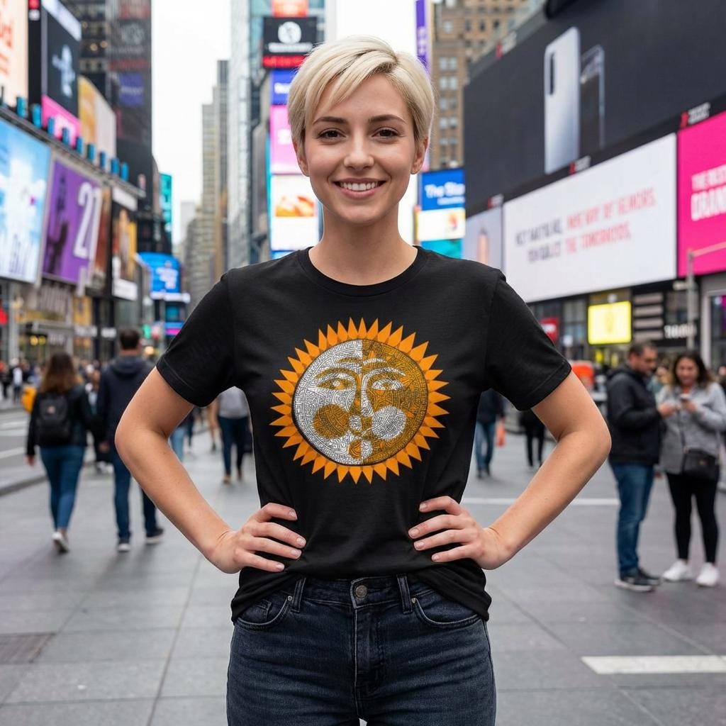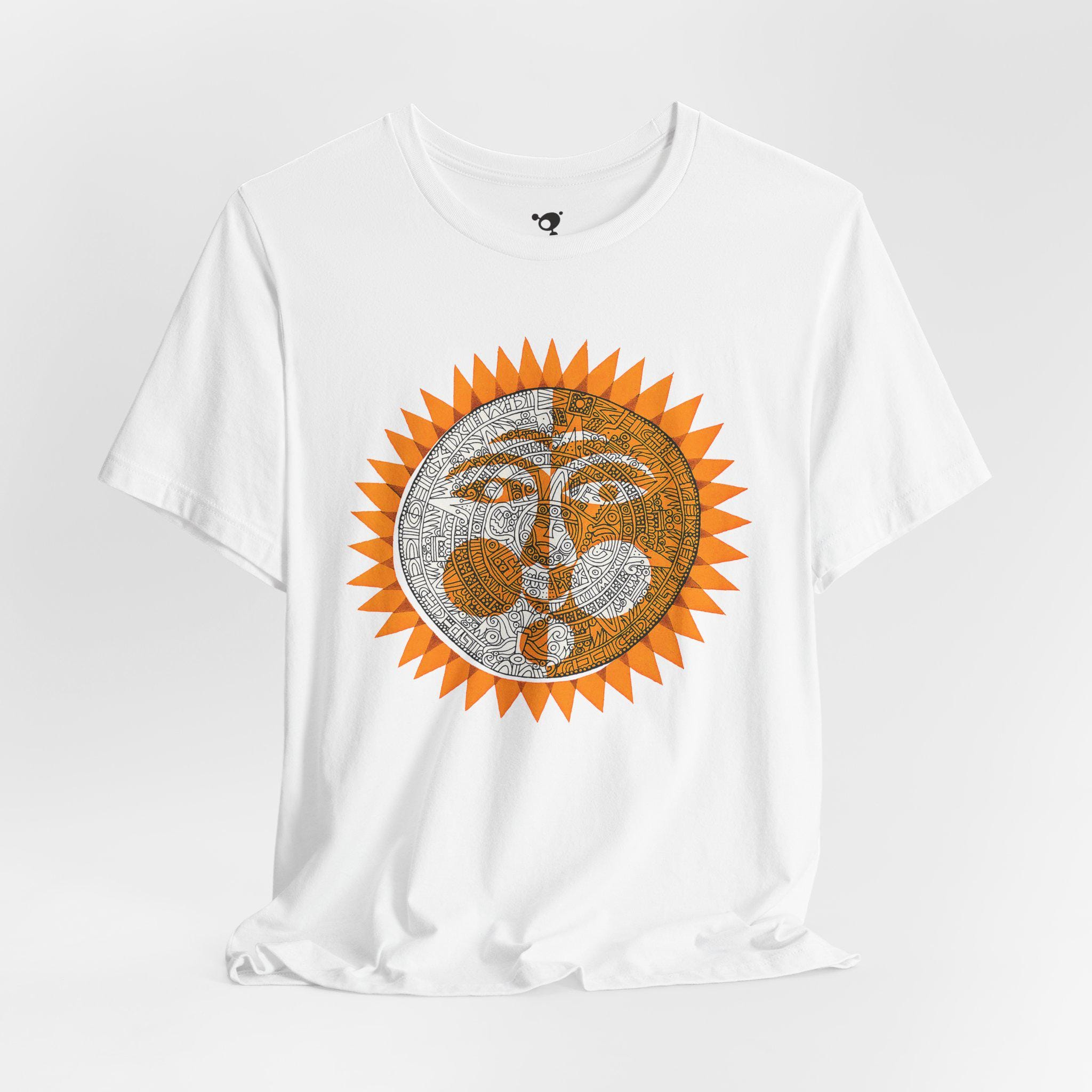 South American Mayan Sun Symbol with a 50's take. This lightweight Bella+Canvas tee brings a sunlit slice of mid-century charm to your everyday wardrobe. The retro sun illustration — rendered in warm, vintage tones and clean geometric lines — sits comfortably on a classic crew tee, evoking slow summer mornings, vinyl records, and the quiet optimism of 1950s design. The breathable Airlume combed and ring-spun cotton feels soft against the skin, while side seams and shoulder tape keep the silhouette tidy through repeated wear. Wear it layered under a denim jacket for market mornings or alone on brighter days to let the sunshine graphic do the talking. Thoughtfully made with tear-away labels and REACH-certified materials, it’s for people who care about comfort, craft, and a lived-in, nostalgic aesthetic.